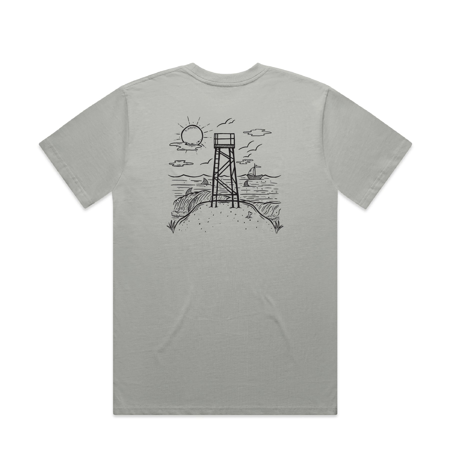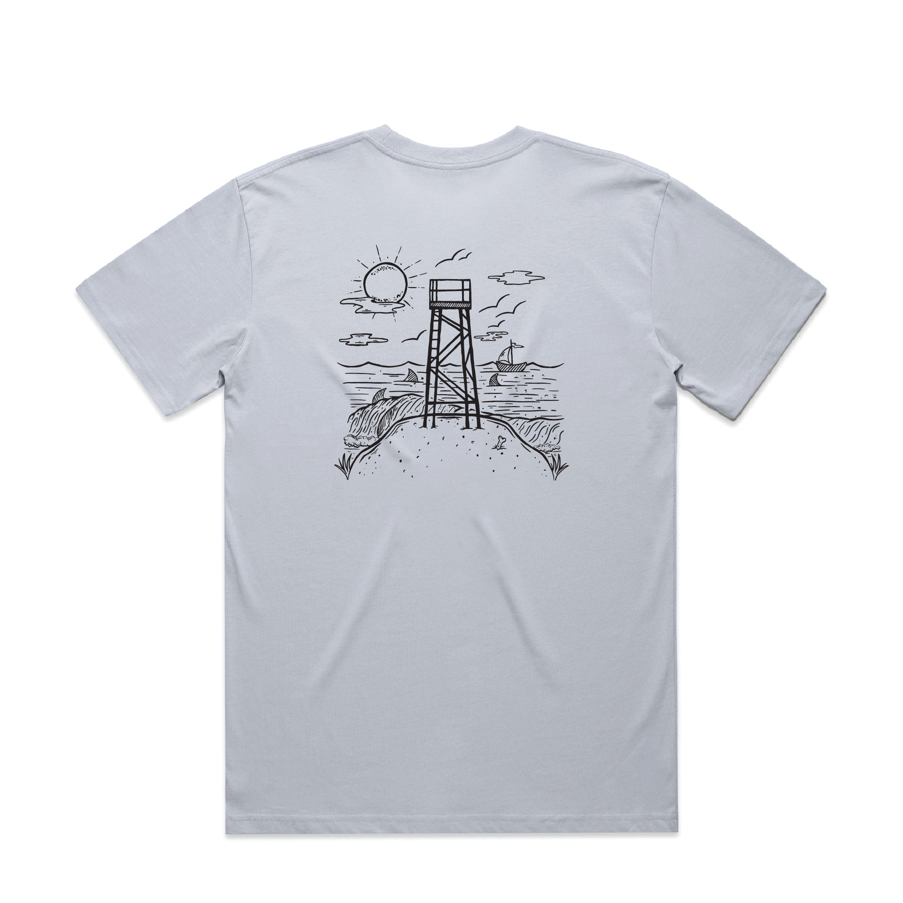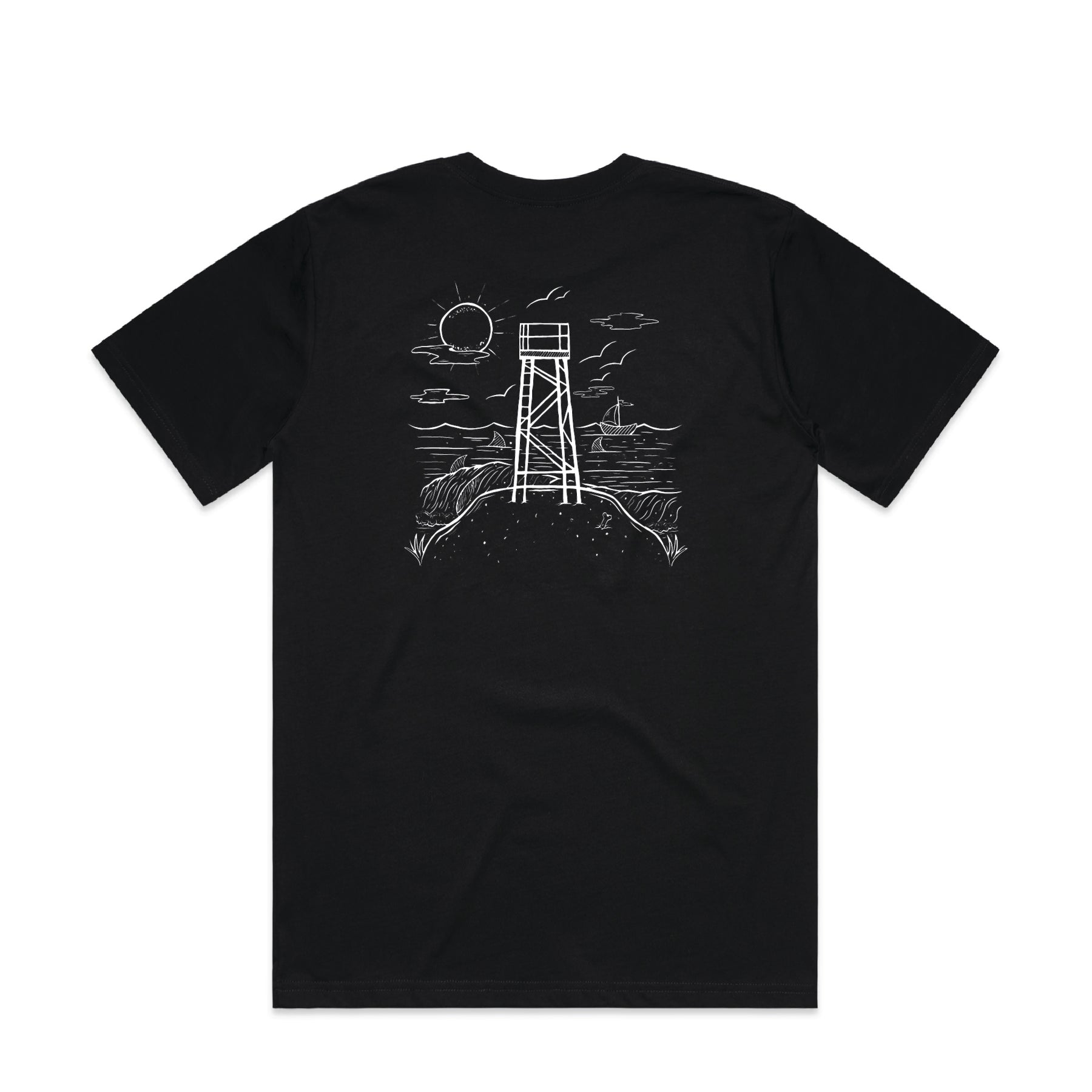 The Iconic Redhead Tower Tee Featuring the Redhead Shark Tower printed on both the front and back.