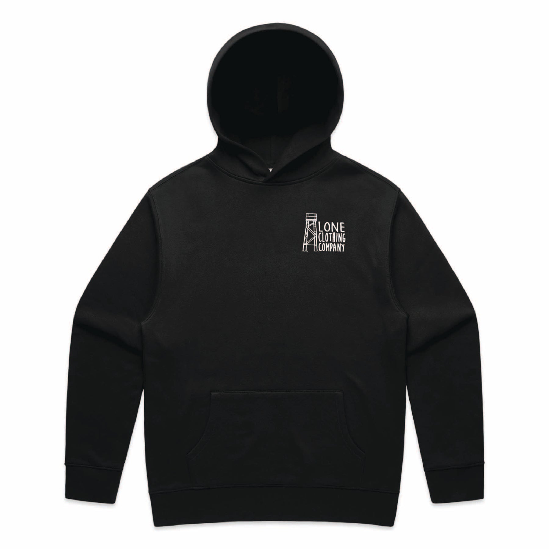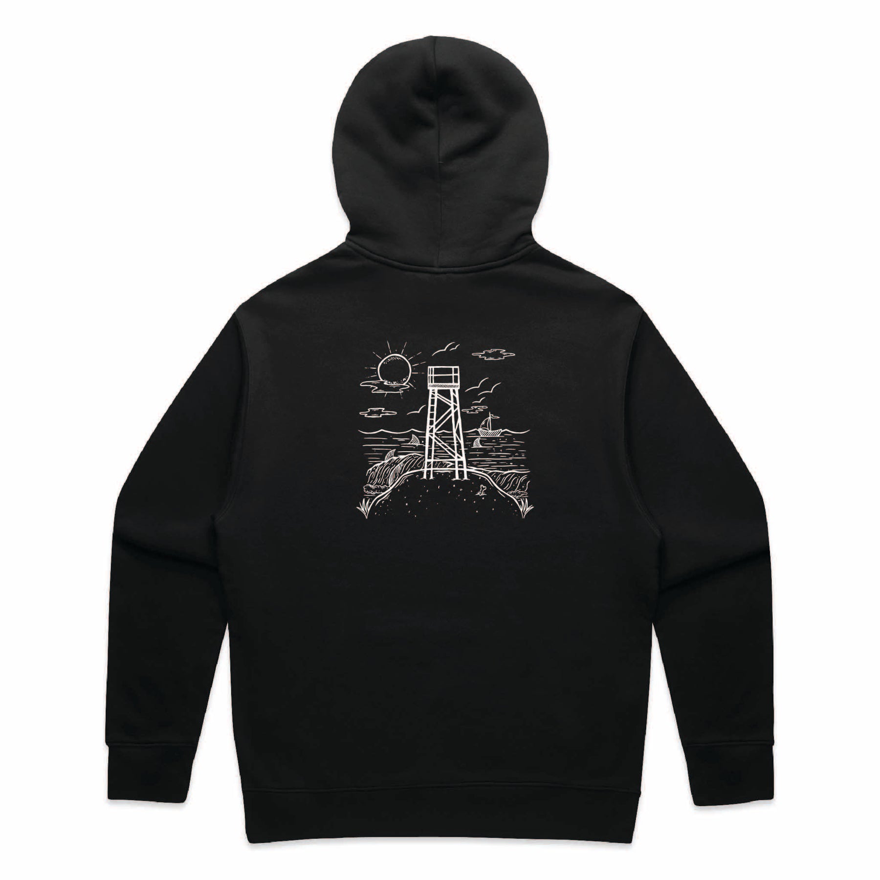 Black Hoodie featuring the Redhead Shark Tower design on the front and back